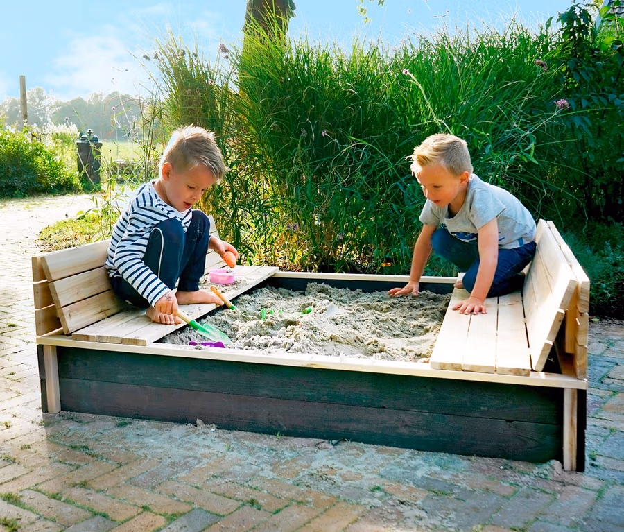 - Zugeklappter Deckel hält den Sand sauber und trocken