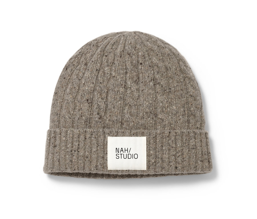 NAH/STUDIO Zopfmuster-Mütze | recycelter Cashmere und Merinowolle, hazelnut melange