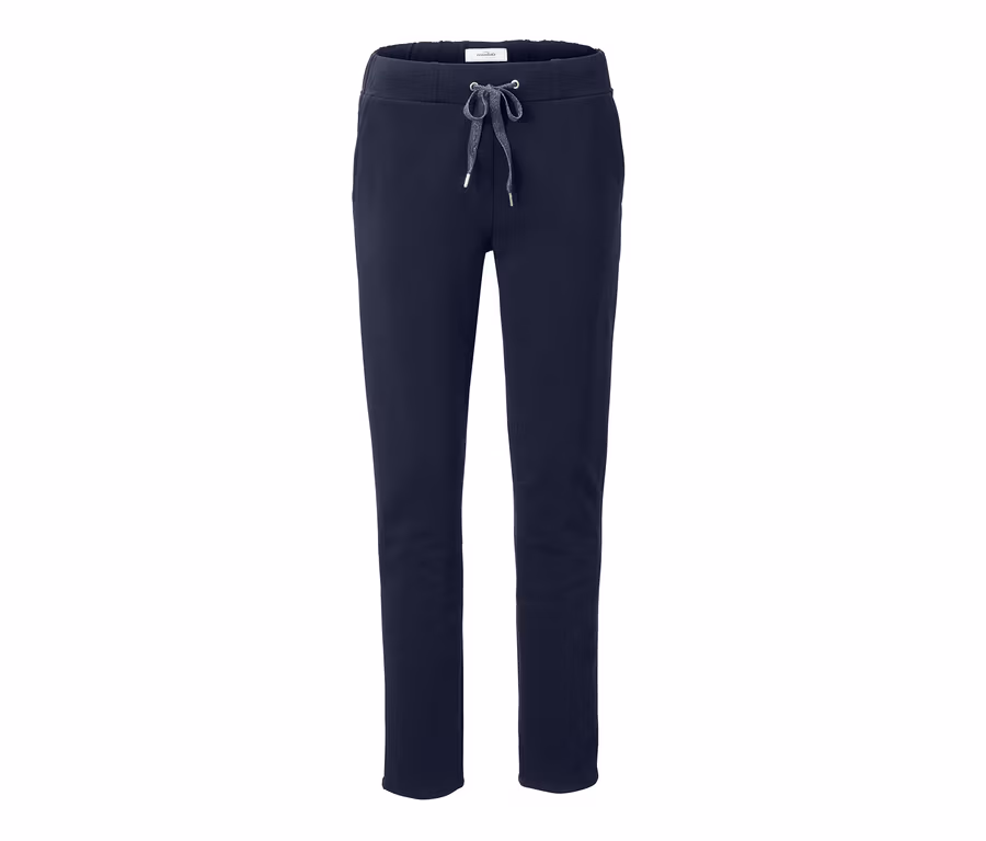 Über ein Bindeband im Tunnelzug des Saums kann die Hose in ihrer Weite variiert werden und ein dekoratives Tape an der Seitennaht sorgt für ein modisches Detail. Zusätzlich verleiht Elasthan dem Stoff Formbeständigkeit bei perfektem Sitz und hohem Tragekomfort.
