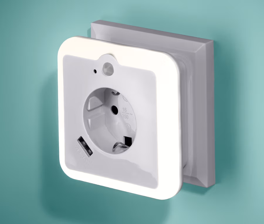 USB-Netzadapter mit Nachtlicht und Steckdose