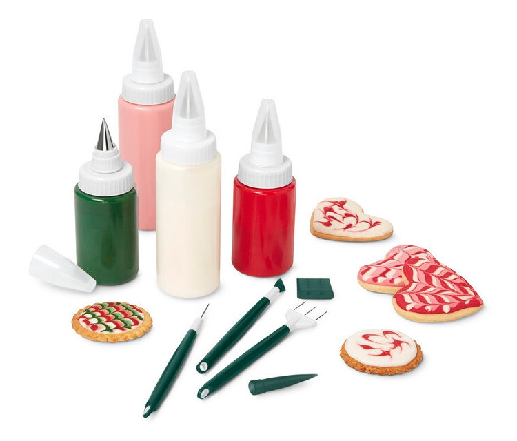 - Inkl. 2 großer Flaschen, 2 kleiner Flaschen, 4 Spritztüllen mit Adaptern, 4 Kappen, 3 Werkzeugen, Aufhängering und Gebrauchsanweisung – Rezeptvorschlag online abrufbar