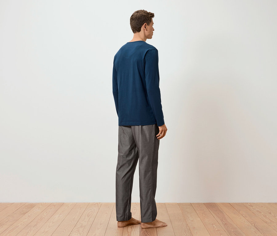 - Hose mit geknöpftem Eingriff, 2 seitlichen Eingrifftaschen und elastischem Bund mit Bindeband