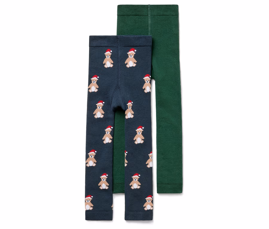2 Kinder-Frottee-Thermoleggings, Teddybär