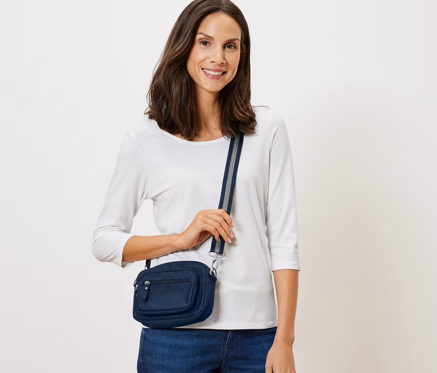 - 3 Tragevarianten: Crossbag, Schulter- oder Gürteltasche