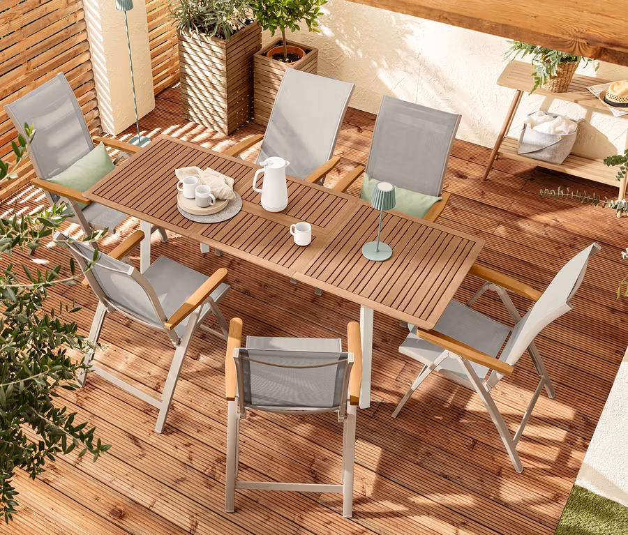 - Aus FSC®-zertifiziertem Massivholz in Teakoptik, geölt