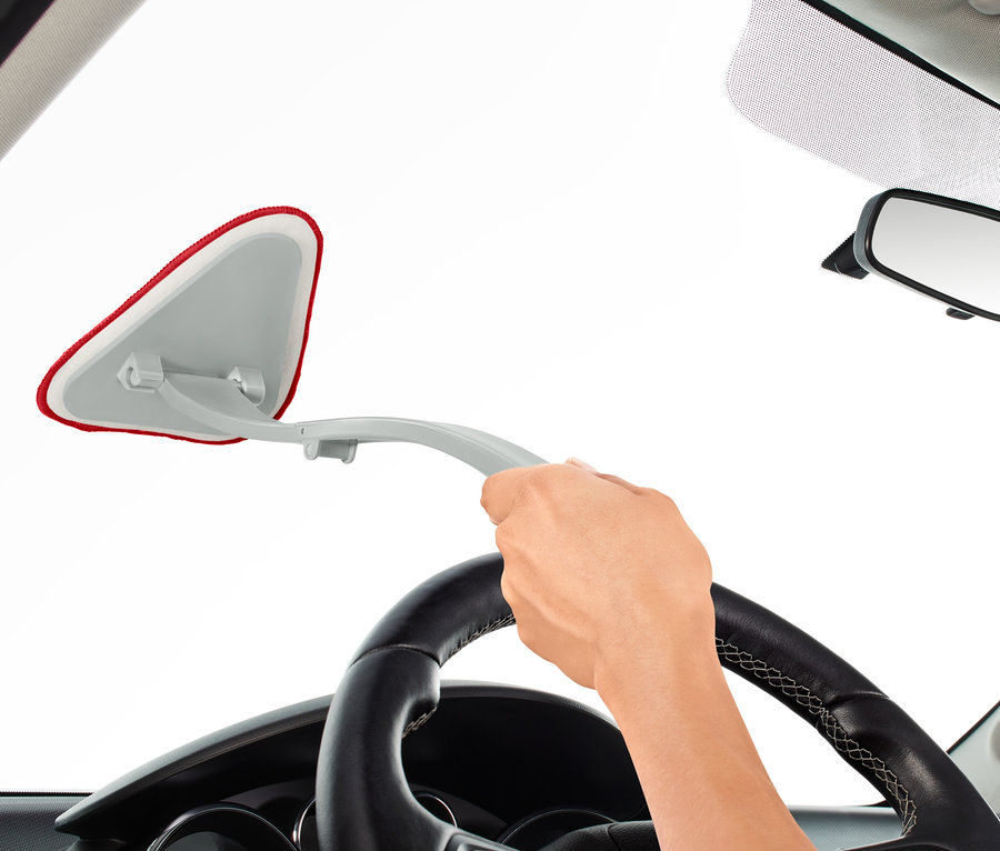 Mit diesem Reiniger ist die Innenseite der Windschutzscheibe im Handumdrehen frei von Kondenswasser, Staub oder Schmutz. Die spezielle Dreiecksform mit kippbarem Kopf ermöglicht dabei auch das komfortable Reinigen oder Trocknen der Ecken und des Bereichs hinter dem Rückspiegel.