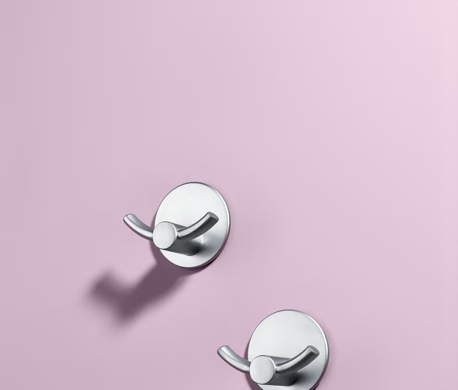 Den ungenutzten Platz auf Fliesen oder anderen glatten Oberflächen kann man ideal nutzen – auch ohne gleich bohren zu müssen. Alles, was man dazu braucht, sind diese zwei selbstklebenden Doppelhaken. An ihnen finden zum Beispiel Handtücher, Waschlappen oder Putzhelfer ihren festen Platz.