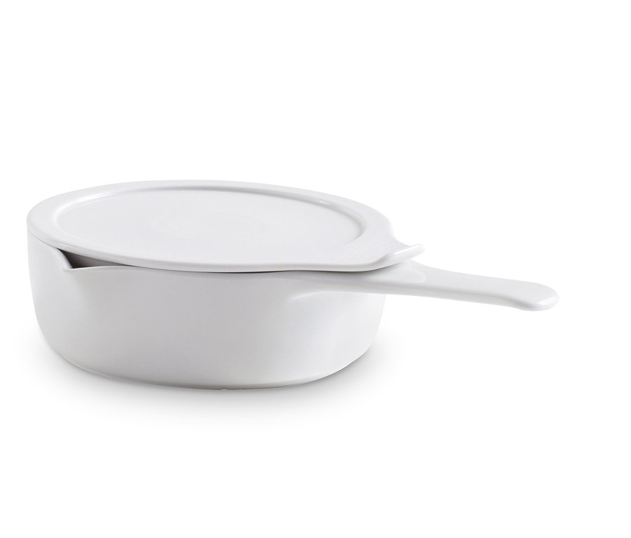 Der Küchenhelfer ist aus patentiertem inducTHERM®-Porzellan gefertigt – einem besonders robusten und langlebigen Material, das beim täglichen Einsatz mit seiner schnitt-, kratz- und abriebfesten Oberfläche überzeugen kann. Und mit seiner Vielseitigkeit: Die Kasserolle ist flammenfest sowie temperaturbeständig von –20 °C bis +400 °C und deckt damit alle möglichen Einsatzarten ab – von der Tiefkühltruhe über die Mikrowelle bis zum Grill, mit allen Herdarten inklusive Induktion kommt sie ohnehin zurecht.