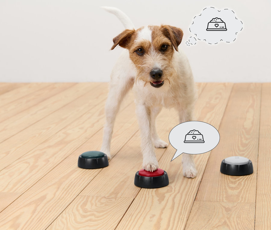 - Button spielt Nachricht ab, sobald er vom Hund gedrückt wird