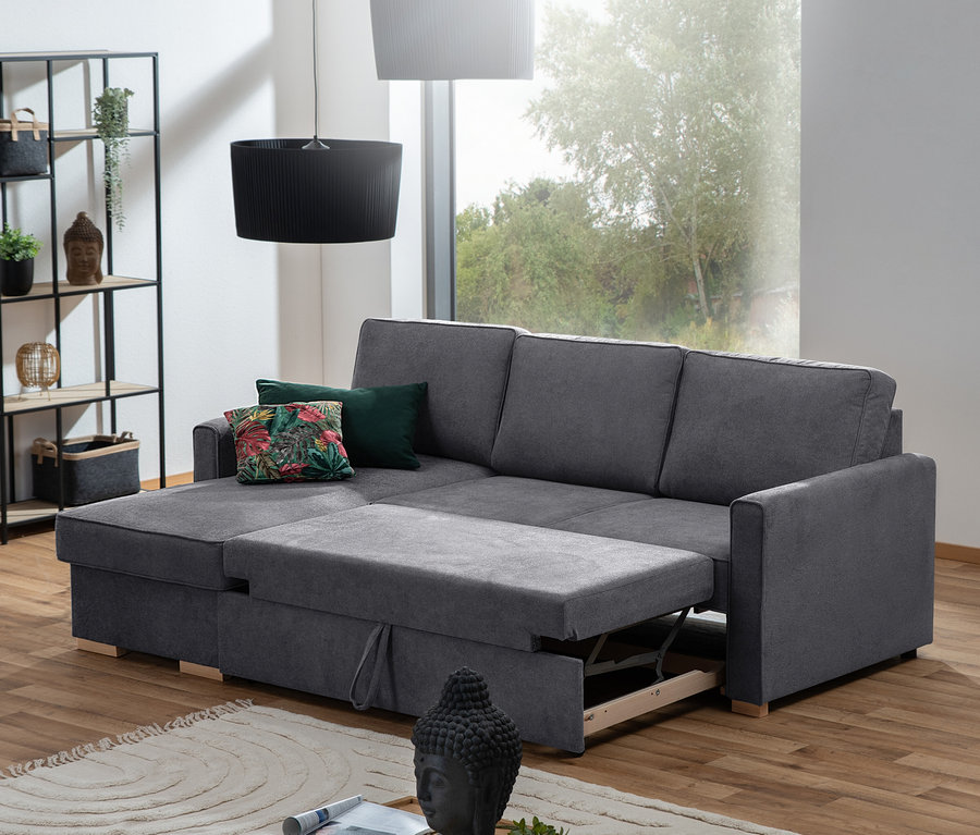 • Sofa lässt sich mit wenigen Handgriffen in ein bequemes Auszugsbett verwandeln (Liegefläche ca. 140 x 205 cm)
