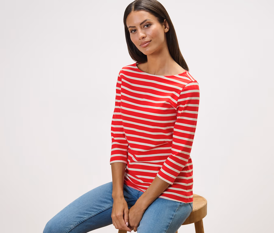 Gestreiftes Shirt mit 3/4-Arm, rot getreift