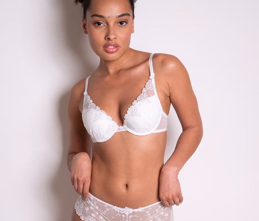 - Tief ausgeschnittener Push-Up-BH mit Bügel und besticktem Tüll