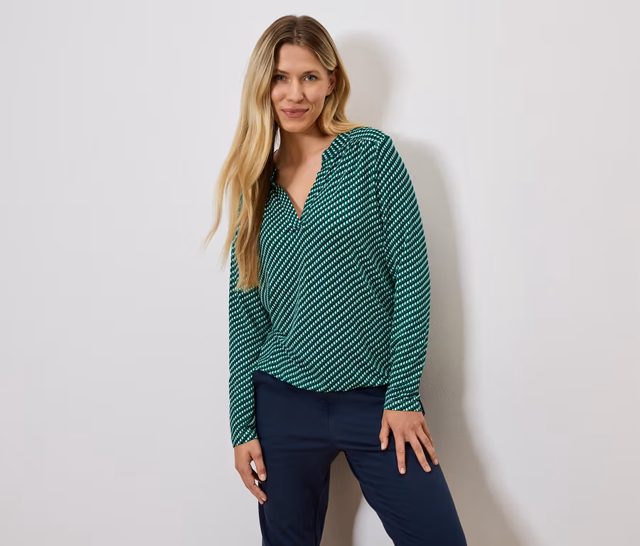 Bedrucktes Blusenshirt, grün-dunkelblau-weiß