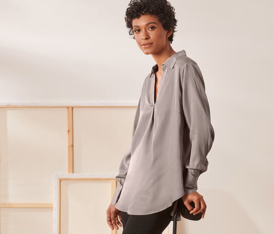 • Diese Bluse beinhaltet Fasern aus nachhaltigem Holz.