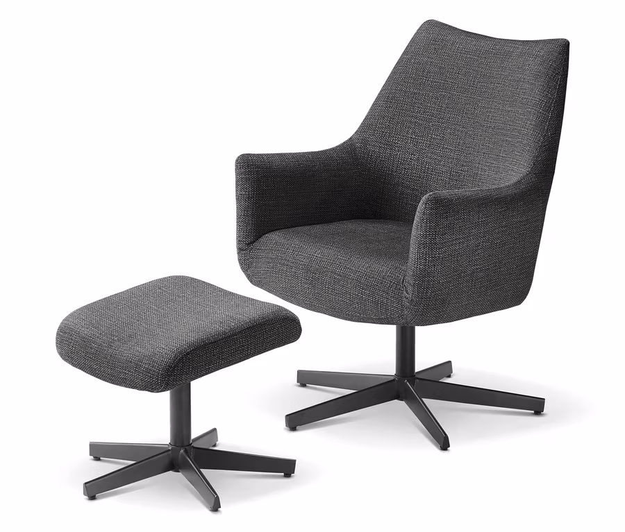 Ob zum Lesen, Fernsehen oder Browsen auf tchibo.de – auf diesem Sessel aus unserer Serie »Funktionalität trifft Design« kann man es sich richtig gemütlich machen. Sowohl die Armlehnen als auch der Fußhocker sind bequem gepolstert und ergänzen perfekt die ergonomisch geformte Rückenlehne. Der Polstersessel ist mit einem Drehfußkreuz und einem hochwertigen sowie strapazierfähigen Bezug ausgestattet, der mindestens 20.000 Scheuertouren standhält.