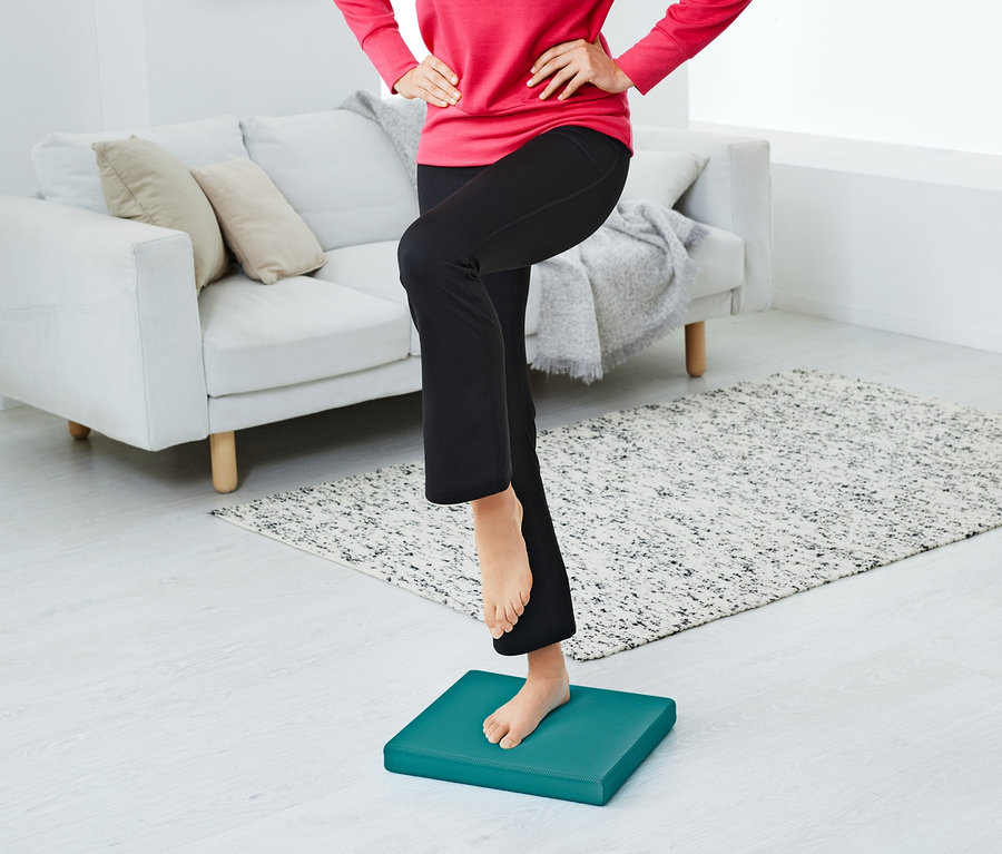 Ein Balance-Pad ist ein etwa fünf Zentimeter hohes, mit Schaumstoff gefülltes Kissen und sieht eigentlich ganz harmlos aus. Jedenfalls bis man darauf steht und merkt, wie der ungewohnte Untergrund sich auf die Körperhaltung und Balance auswirkt. Natürlich kann man jede Übung auch auf festem Boden machen – dann verpasst man aber einen eindrucksvollen Aha-Effekt und vor allem den langfristigen Trainings-Effekt.