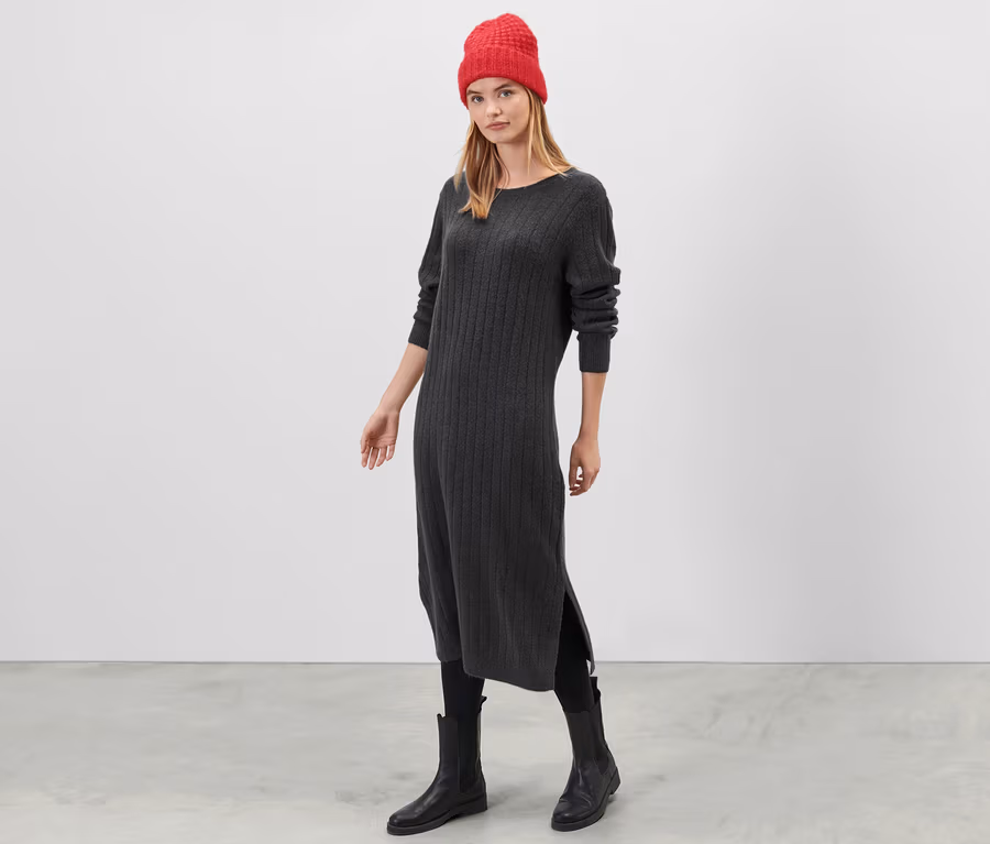 Geripptes Strickkleid, grau