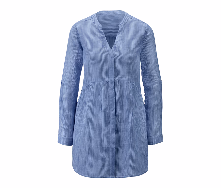 - Tunika-Ausschnitt mit leichtem Stehkragen