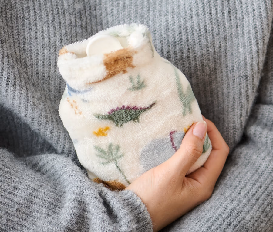 • Silikon-Wärmflasche mit weichem Plüschbezug