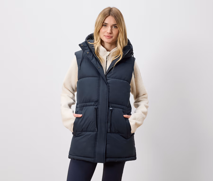 • Taille und Kapuze mit Kordelzug