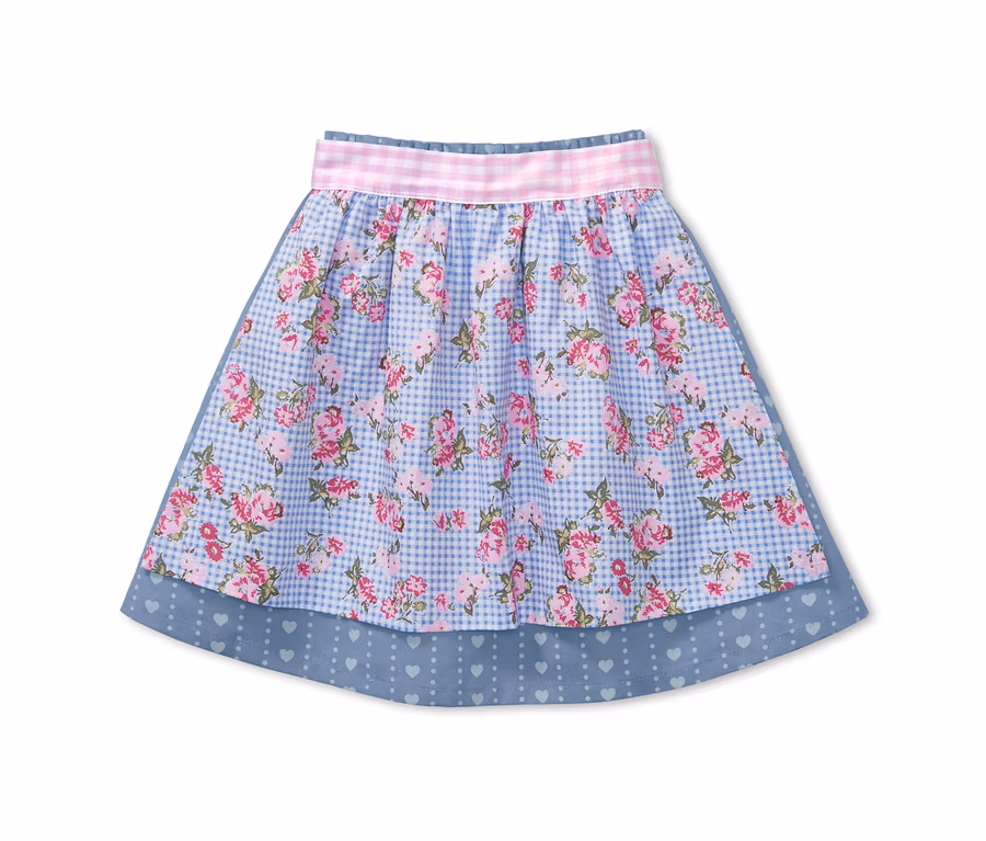 - Schürze zum Wenden: 1 Seite Vichy-Karo, 1 Seite Vichy-Karo mit Blumen-Print