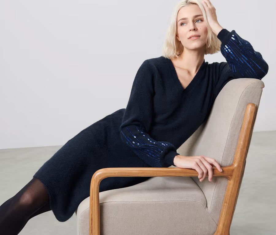 - Mit Streifendetails aus Pailletten an den Ärmeln