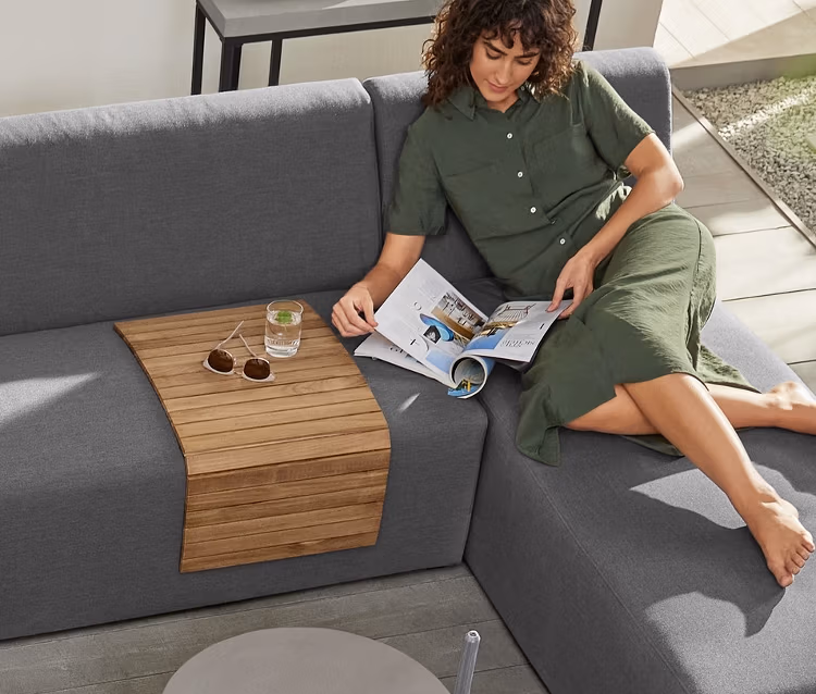 - Die Outdoor-Stoffe von Sunbrella® sind schmutz- und wasserabweisend, atmungsaktiv, schimmelbeständig sowie farbecht – ganzjährig outdoorgeeignet