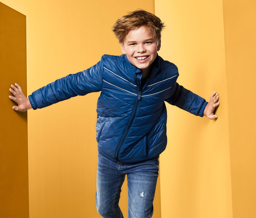 Hält die Kids an kalten Tagen warm und kommt im sportiven, coolen Look. Diese Steppjacke mit diagonal verlaufenden Kontrast-Paspeln hält angenehm warm – dank des hochschließenden Stehkragens sogar bis zum Hals. Die Jacke ist außerdem mit einer schmutzabweisenden ecorepel®-Imprägnierung ausgestattet und hat seitliche Eingrifftaschen für zum Beispiel kleine Spielzeuge, kalte Finger oder Naschereien.