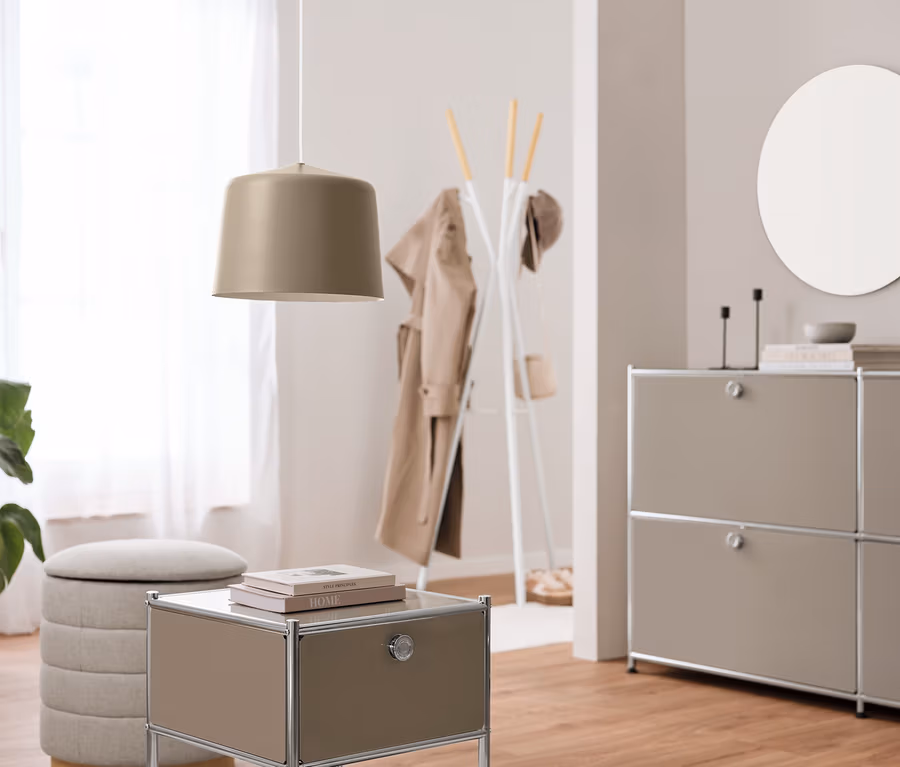 - Lampe mit hochwertigem Metallschirm und Textilkabel