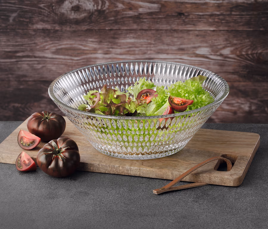 • Glasschale mit lässigem Dekor im Ethno-Style – für Salate, Beilagen oder Desserts