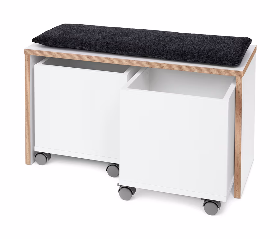 Sitzbank mit Aufbewahrungskisten und Echtholz-Multiplexkanten