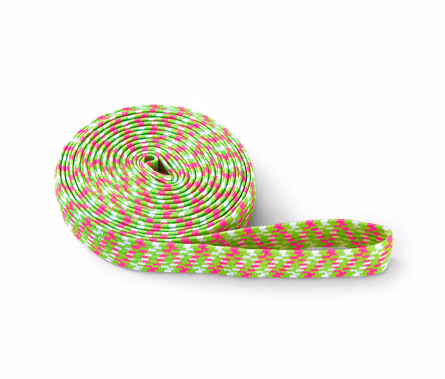 Die einen kennen es als Gummitwist, die anderen als Gummihopse oder Gummihüpfen – aber gespielt haben es alle. Das klassische Spiel für Kinder trainiert Geschicklichkeit, Rhythmus sowie Körperbeherrschung und dieses Elastikband ist alles, was man dafür braucht. Das extrabreite Band ist komfortabel, ohne an den Beinen einzuschneiden, und mit seinen knalligen Neonfarben hat man es immer gut im Blick. In der Spielanleitung werden verschiedene Varianten vorgestellt und in dem beiliegenden Netzbeutel lässt sich das Band problemlos transportieren.