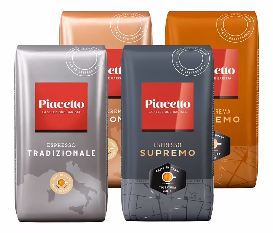 - Das Set beinhaltet 1x 1 kg Piacetto Tradizionale Espresso und 1x 1 kg Piacetto Tradizionale Caffè Crema, 1 x 1 kg Piacetto Supremo Espresso & 1 x 1 kg Piacetto Supremo Caffè Crema