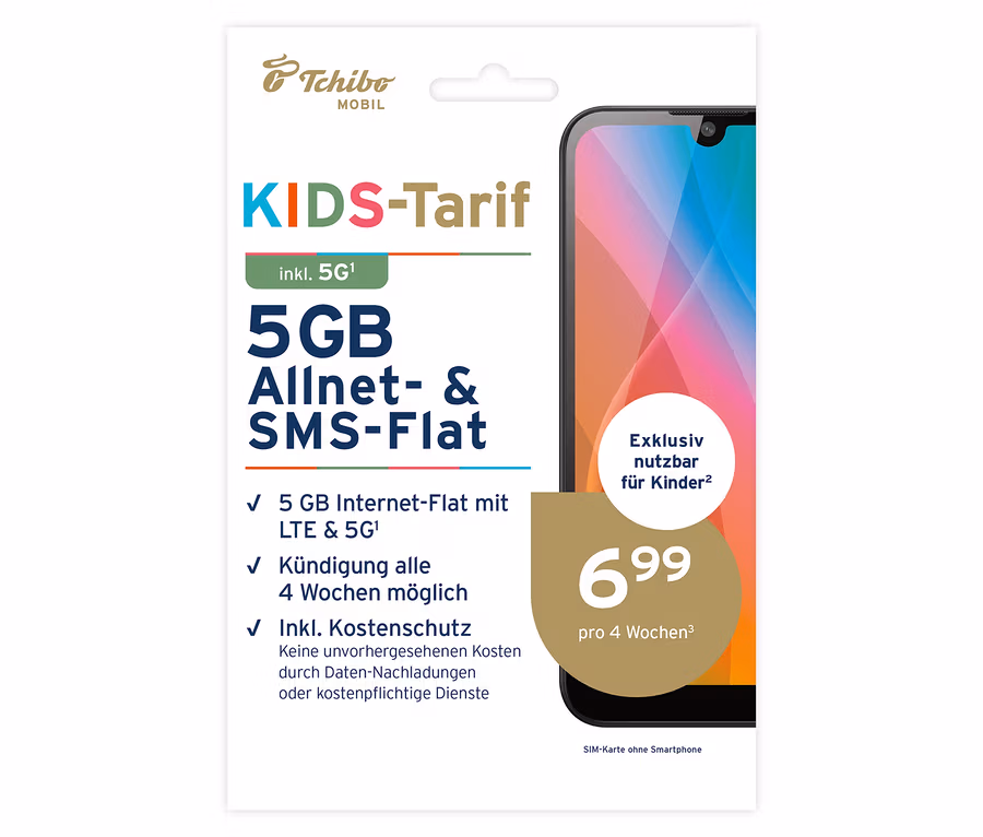 Kids-Tarif mit 5 GB für 6,99 € pro 4 Wochen