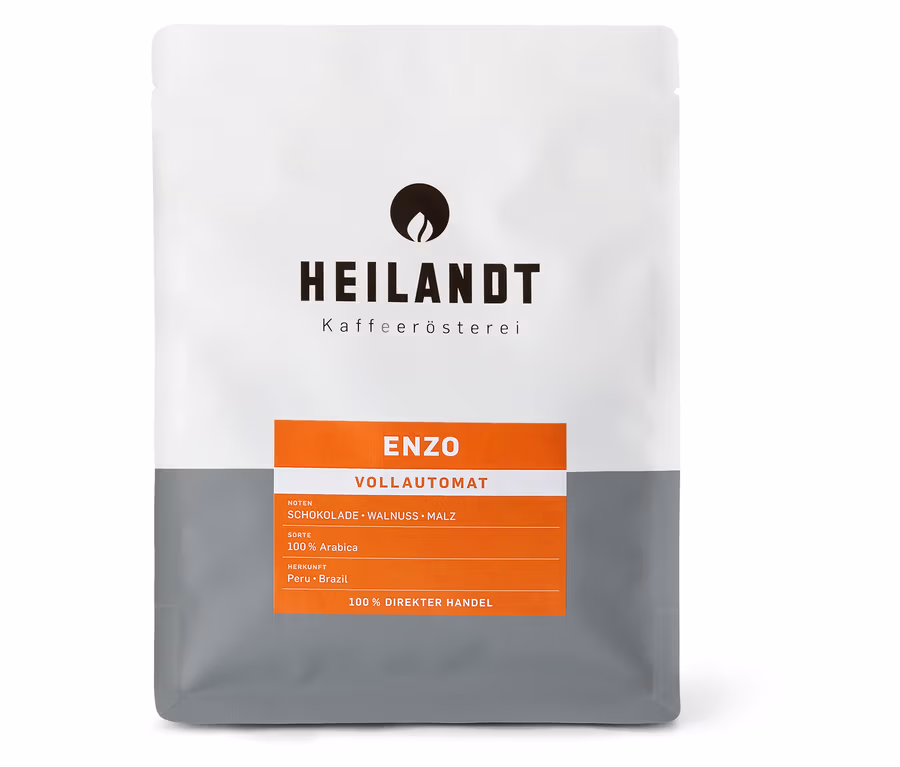 Die Frage beim Enzo war, können wir Italien? Und wie schmeckt Heilandt auf italienisch? Die Idee war, Klassisches neu zu interpretieren und Körper mit Süße zu verbinden. Und das zu 100% aus Arabica-Bohnen. Herausgekommen ist ein toller Kaffee mit nicht nur viel Fülle, sondern besonders Schokolade und Süße. Allerdings ohne Bitterstoffe. Eben italienisch ohne zu klassisch zu sein. Egal ob im Vollautomaten oder im Siebträger.