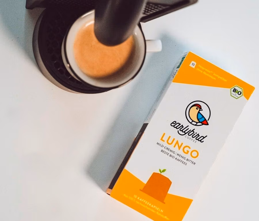 Unsere earlybird Kaffeekapseln stellen zum gegenwärtigen Zeitpunkt die ökologisch unbedenklichste Variante dar, um Kaffee in einer Kapselmaschine zuzubereiten: Sie bestehen zu 100 % aus nachwachsenden Rohstoffen und belasten die Umwelt deutlich weniger als Kapseln aus Aluminium oder Plastik. Es sind keine erdölbasierten Stoffe enthalten, kein PLA, kein GMO und sind damit heimkompostierbar.
