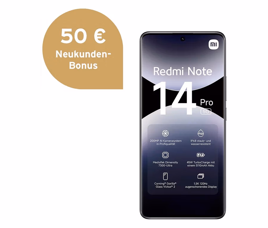 - Xiaomi Redmi Note 14 Pro 5G 8GB 256GB schwarz inkl Akku (fest verbaut)
