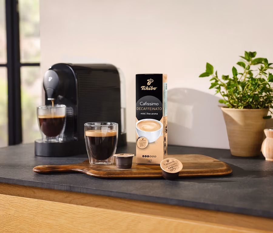 Sorgfältig ausgewählt von unseren Experten und durch die Tchibo Einzelröstung veredelt, entfaltet sich der fein-aromatische Geschmack dieses milden entkoffeinierten Caffè Cremas.