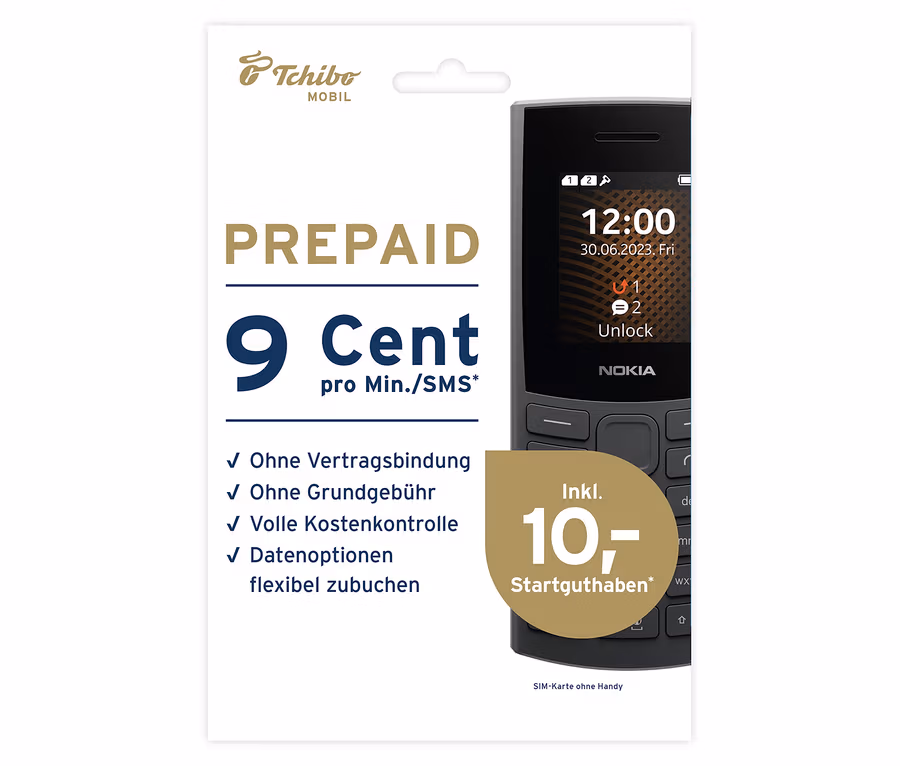 - Mit Freischaltung der SIM-Karte im Prepaid-Tarif erhalten Sie einmalig 10 € Startguthaben1, gültig für alle Standard-Inlandsverbindungen (außer Sonderrufnummern und Rufumleitungen).