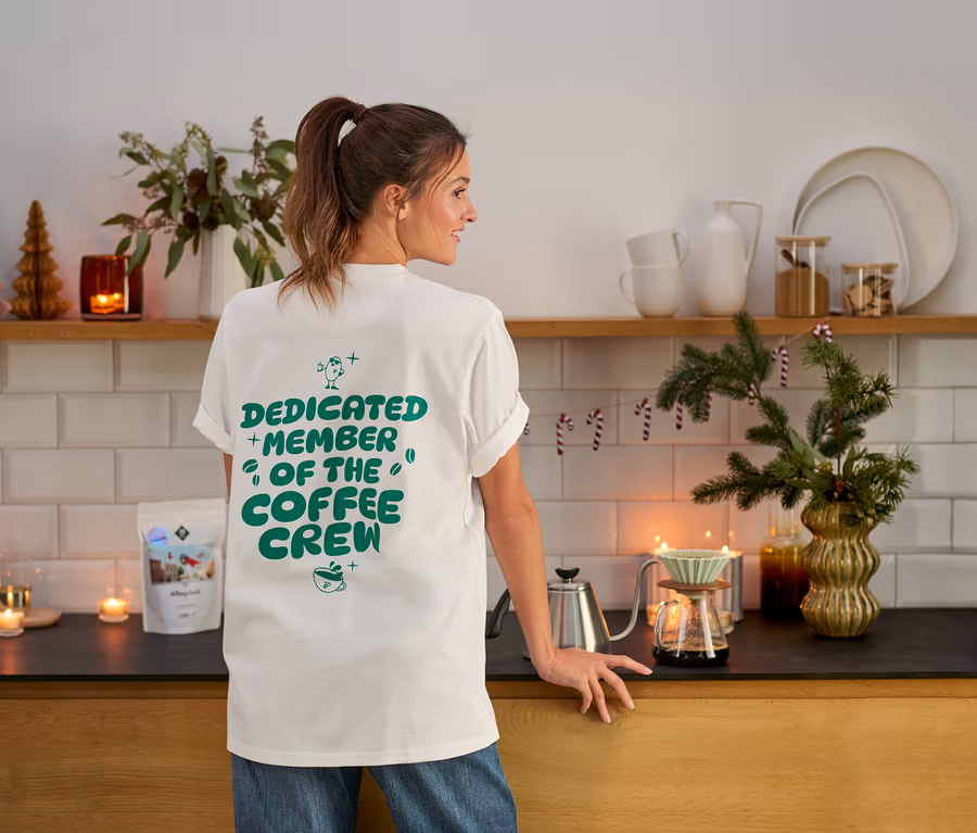 Unser Coffee Crew T-Shirt und unser „Alltagsheld“ im Set sind das perfekte Geschenk für alle, die Kaffee lieben. Für viele Momente der Freude im Daily Grind!