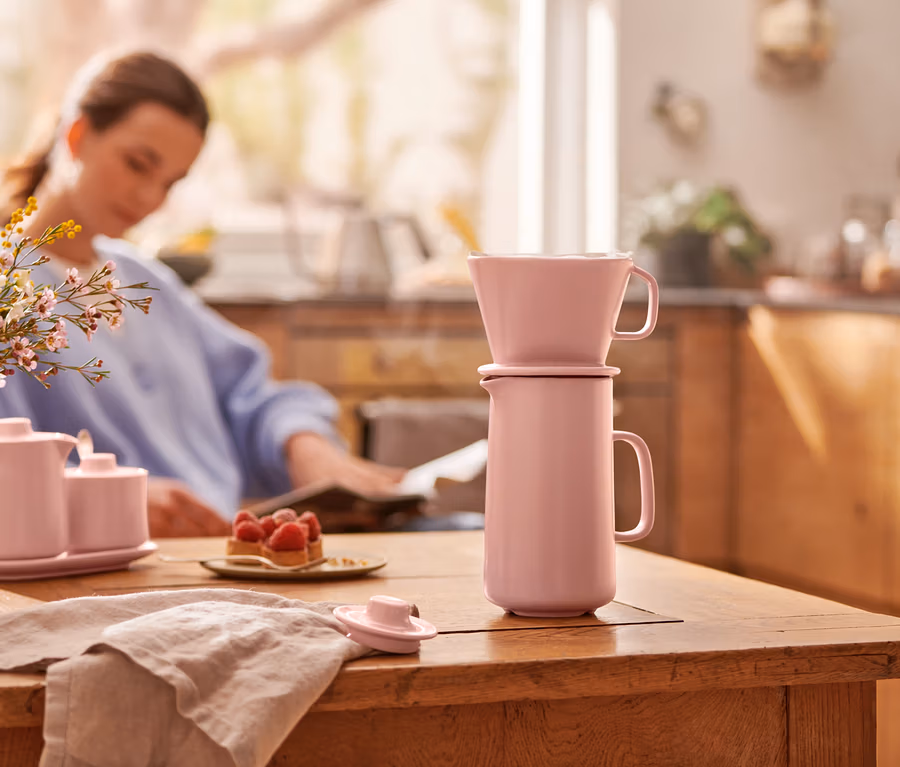 Kaffeekanne mit Filter, rosa
