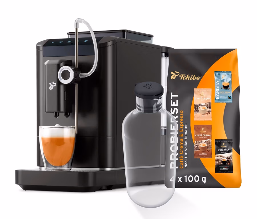 • Set aus Tchibo Kaffeevollautomat »Esperto2 Milk« in Granite Black, Milchkaraffe aus Borosilikatglas und einem 400 g Kaffee-Probierset