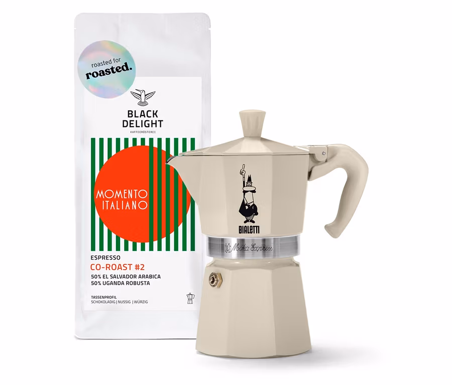 - Set beinhaltet 1 x Black Delight x roasted. - Co-Roast #2 Espresso - 250 g Gemahlen und 1 x Bialetti Moka Express 190 ml in Crema