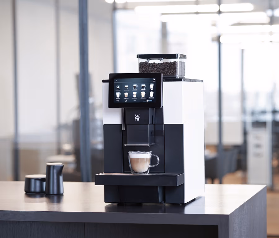 Der Premium-Kaffeevollautomat WMF 950 S überzeugt durch Qualität und Komfort und bietet Ihnen die perfekte Gelegenheit, in die professionelle Kaffeewelt einzusteigen. Er steigert die Produktivität und Zufriedenheit in Ihrem Unternehmen durch erstklassigen Kaffeegenuss auf kleinem Raum.
