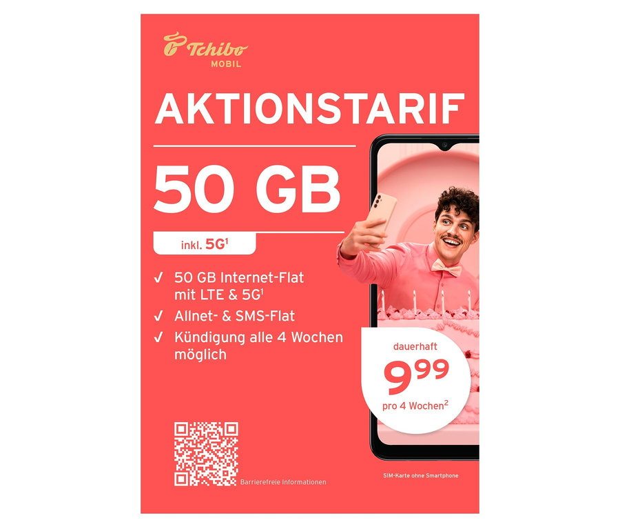 Aktionstarif mit 50 GB für 9,99 € pro 4 Wochen