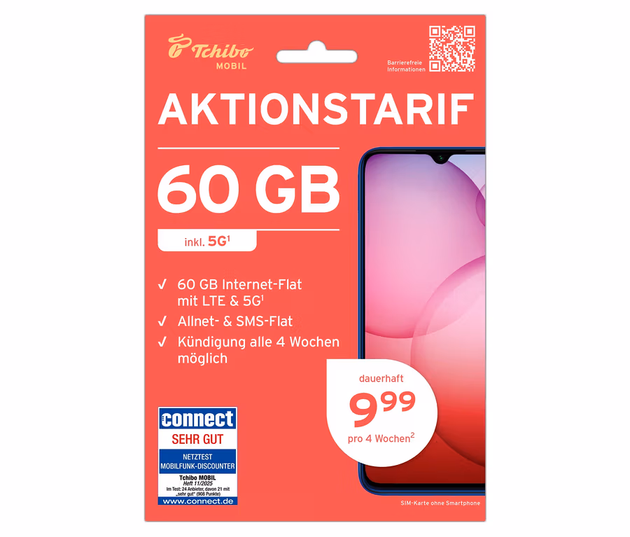 Aktionstarif mit 60 GB für 9,99 € pro 4 Wochen