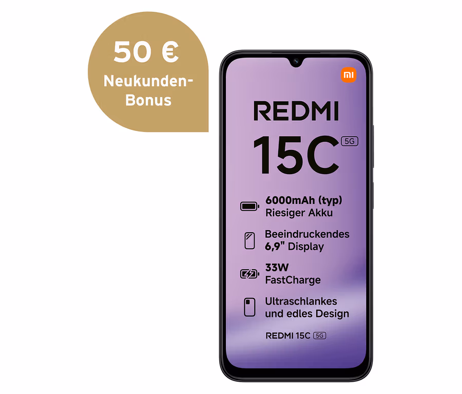 - Xiaomi Redmi 15C 5G 128GB Midnight Black USB-Typ-C-Kabel, Kurzanleitung, Garantiekarte